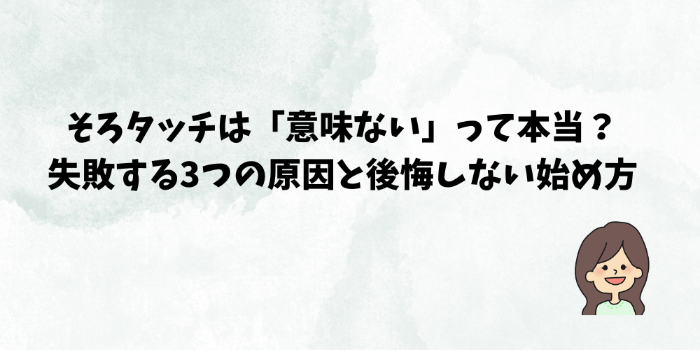 ▶そろタッチの無料体験はココをクリックこの記事では、なぜ「そろタッチは意味ない」と言われてしまうのか、よくある3つの失敗パターンと、確実に効果を出すための賢い始め方をわかりやすく解説します。